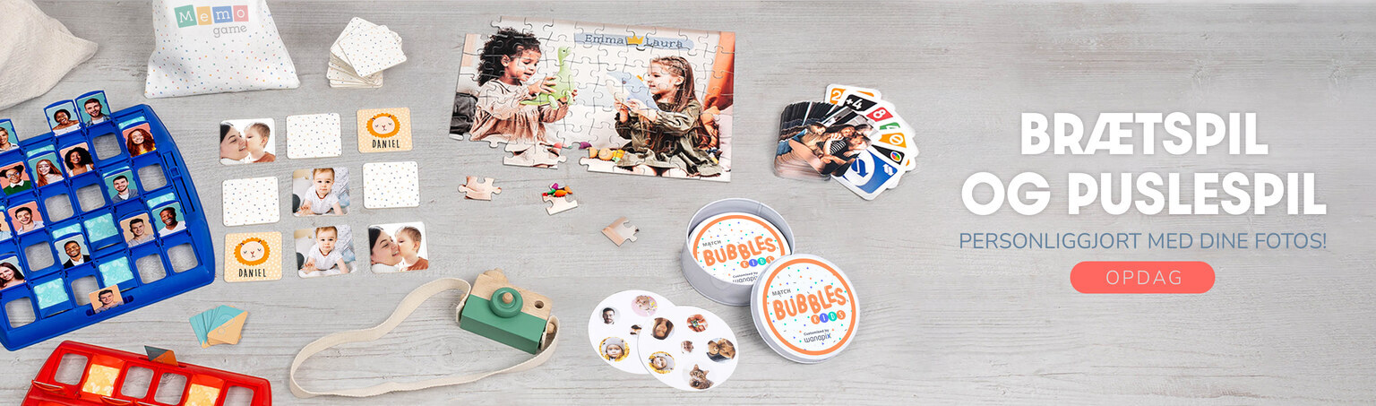 Vores sortiment er bredt og alsidigt: fra nøgleringe, krus, puslespil, tæpper, håndklæder, brætspil, trofæer, fotolærreder, puder eller sportsprodukter, blandt meget andet. Du kan designe et produkt fra bunden eller vælge mellem tusindvis af designs og temaskabeloner, som kan tilpasses med dine egne fotos, tekster eller illustrationer til mærkedage (Valentinsdag, Fars dag, Mors dag, jul, fødselsdage, jubilæer, events, bryllupper...), samt gaver til mænd, kvinder, børn eller alle aldre og kategorier efter interesser, hobbyer eller professioner.