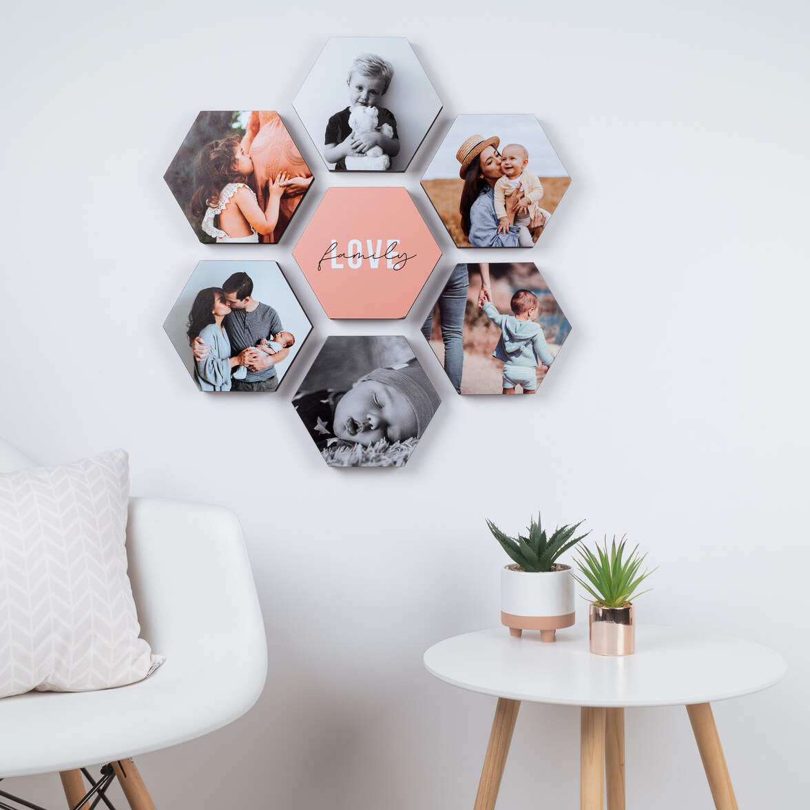 Du kan vælge flere forskellige modeller. Hvis du vælger det firkantede format, kan du placere dine Instagram-fotos og tilføje dem direkte fra din smartphone til din væg. Eller du kan vælge den sekskantede form for at skabe endnu mere originale kompositioner af billeder. Vælg dine bedste minder og brug dem som et dekorativt element, fordi der ikke er noget bedre end at dekorere med billeder, uden at skulle bore huller først.
