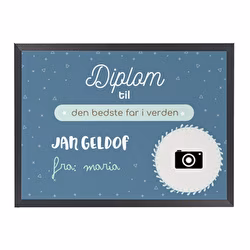 Du kan lave fars dags diplomer med et foto. På den måde bliver det endnu mere personligt og unikt. Det særlige ved Fars Dag-diplomet er, at du kan hænge det op, da det leveres indrammet.