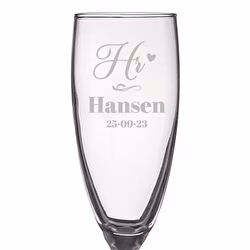 Hvis du er ved at gifte dig med dit livs kærlighed, eller hvis du er blevet inviteret til et bryllup, er du måske på udkig efter personlige bryllupsglas. På denne side finder du vores udvalg af indgraverede bryllupsglas. De er alle fremstillet af glas af høj kvalitet og kan personliggøres med brudeparrets navn ved hjælp af en graveringsteknik. Resultatet er flot og elegant.