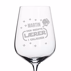 Vi tilbyder foruddesignede skabeloner med motiver specielt til lærere, som nemt kan tilpasses med navne, klasse, dato eller en personlig hilsen. Derudover findes der forskellige typer glas afhængigt af drikken: vinglas, champagneglas og flere, alle fremstillet i krystal af høj kvalitet og præcist graveret for et elegant og holdbart resultat. En original, praktisk og rørende gave til at skåle for alle årets gode øjeblikke.