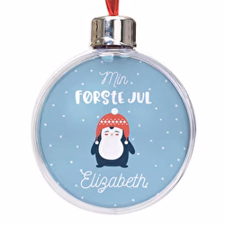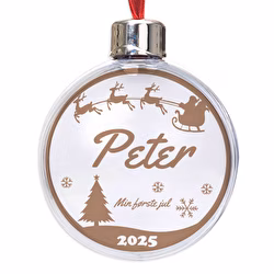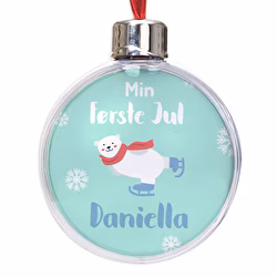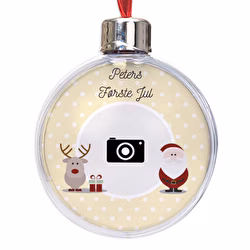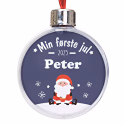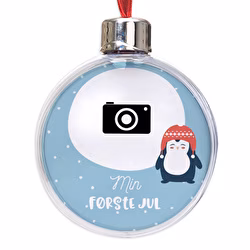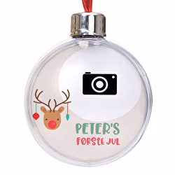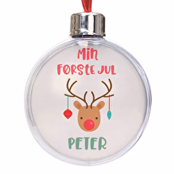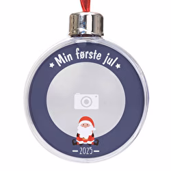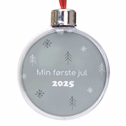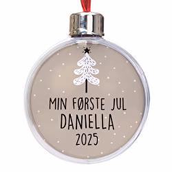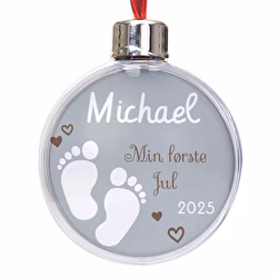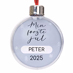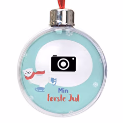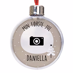 Vi anbefaler at et så særligt øjeblik uddødeliggøres i en julekugle med teksten "Min første jul". Vælg et foto, en tekst, et navn, en sætning, en tegning og/eller et design, som du elsker, og bliv overrasket over det fine resultat.