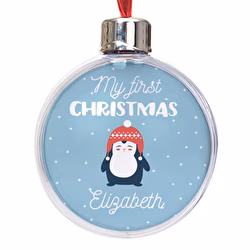 Hvad enten det er til din baby, din niece/nevø, dit gudbarn, dit barnebarn eller din bedste vens baby... En personlig "Min første jul" julekugle er den ideelle gave! Det er ikke kun originalt, men også en unik og personlig gave: Der er ikke to ens, og du kan lave den specielt til den søde lille person.