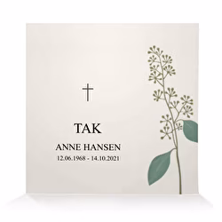 I vores online shop kan du også personliggøre takkekortene til begravelser efter dine ønsker. Du kan vælge det design, du bedst kan lide, papirtypen og formatet (flade eller foldede kort). Du kan også tilføje et foto eller en særlig personlig besked for at gøre dem endnu mere personlige.