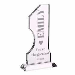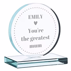 Glastrofæer har en base, så de kan stå på enhver overflade og er normalt gennemsigtige, hvilket gør dem elegante og sofistikerede. De er alle personliggjort ved gravering, hvilket betyder, at navnet og sætningen er graveret direkte i glasset for at skabe en langvarig effekt af høj kvalitet.